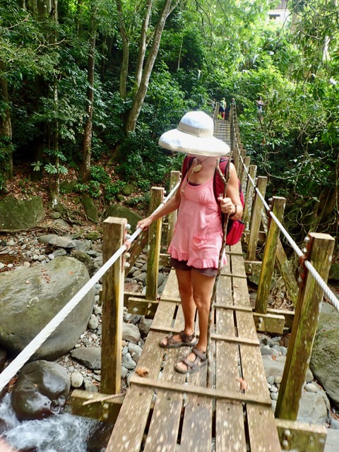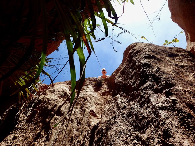 We were on our way back the way we came. Cindy didn’t have to play Tarzan for the vine to help her across.