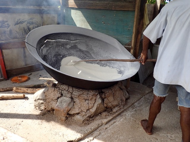 methods of cooking (not much different from the method of making Cassava bread that we saw being made and bought at Daniel’s on the side of the road),