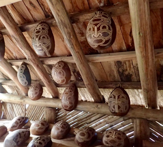 Kathy and I each bought one of his Calabash creations. Mine has a design that represents the face paint pattern that would have been worn at a celebration of a hunt.