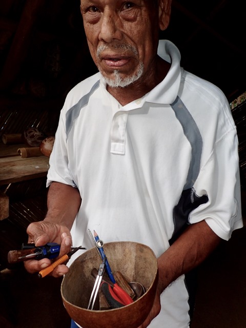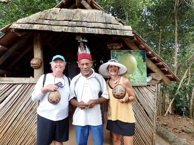 This man, a former chief from the ‘70s, showed us the tools he uses to etch designs in Calabash (a gourd type plant) that represent face paint worn by the Kalinago back in the day.