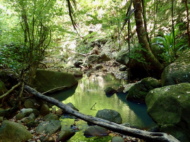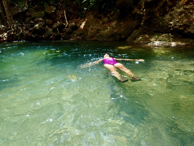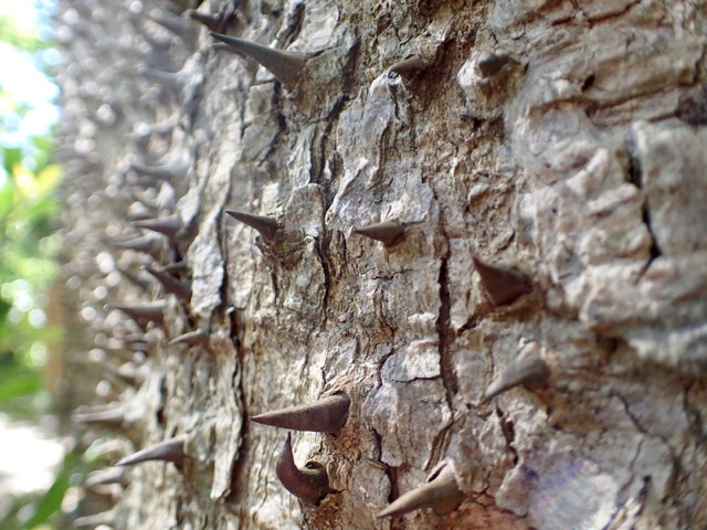 It is interesting how some trees protect themselves with spikes. I wonder why they needed them? The puffer green eyed fish was quite beautiful as was the glowey red coral. Good for you that you finally found it. I have never seen that before. The hike into the deep forest looked like quite a trek indeed! I think it was more than I could do today. You certainly deserved the quiet swim in the pool. I so wish people understood the need to protect and preserve such important flora and flauna that creates such important habitat for us all. The earth is quite fragile really! Your adventures were once again breath taking! I am so glad you take the time to share . You have a gift for story telling and we are enriched by your telling. Stay safe and continue on your way cautiously. C