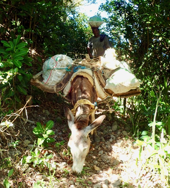 We met a farmer using the narrow trail to transport his goods. He told us to let the donkey pass on the steep side!
