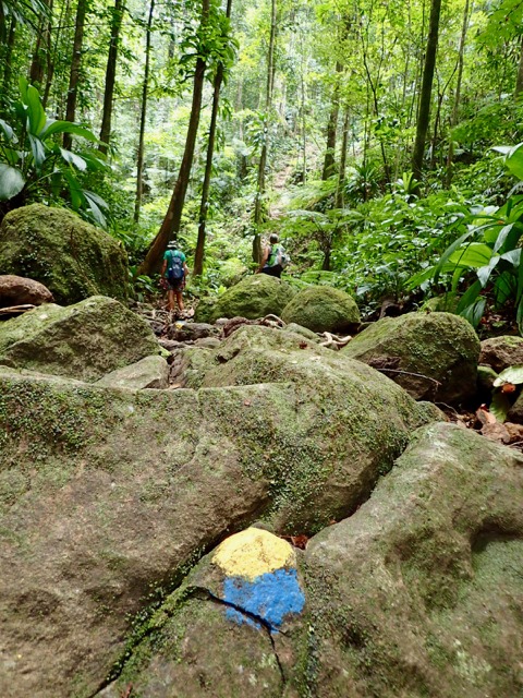The next hike we did on our own was with Kendra and Mark on s/v Cavu. We did segment 13 of the Waitukubuli (pronounced: Wigh too koo boo lee) Trail. This trail has 14 segments and runs the whole length of the island from South to North and includes both East and West coasts. Some of the tours we had already been on included segments of the Waitukubuli Trail. The trail has the Kalinago name of the island. Dominica is the name Christopher Columbus gave the island in 1493. Before that, it was Waitukubuli (translation: How Tall Is Her Body!).