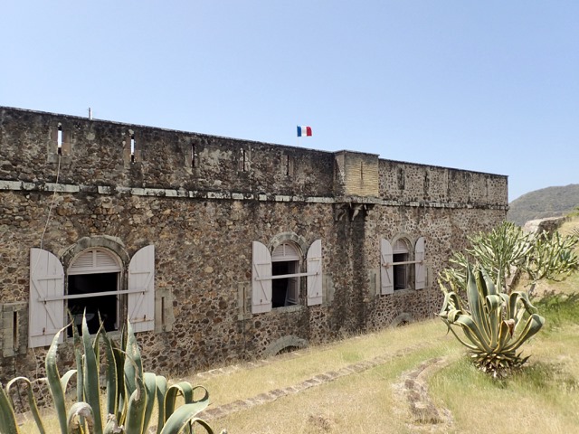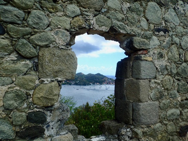 We decided along with SeaFrog to switch from our mooring off the town at Terre d’en Haut to one off the tiny, uninhabited island of Ilet a Cabrit (pictured in the background of this picture I took from Fort Napoleon. This has become our favorite place to take a mooring in The Saints! It’s peaceful, and we could just jump off the boat to go for a snorkel!