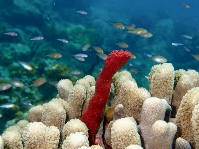 We anchored at the bay across from Pigeon Island (Malendure), dinghied over to Pigeon Island (part of the Jacques Cousteau Reserve), snorkeled…