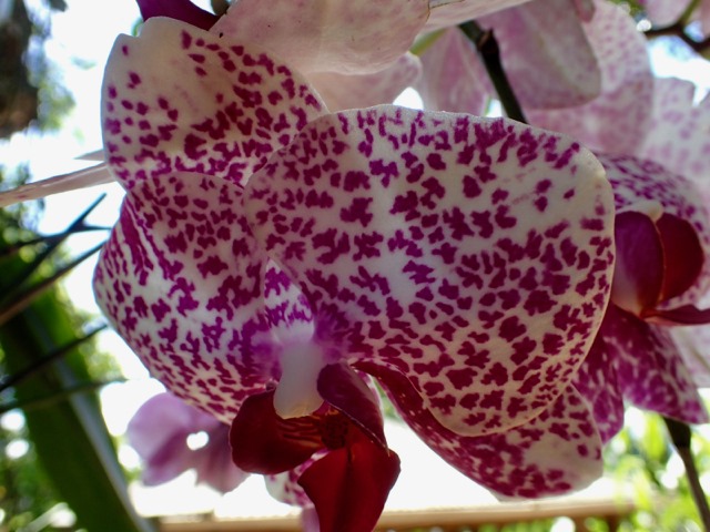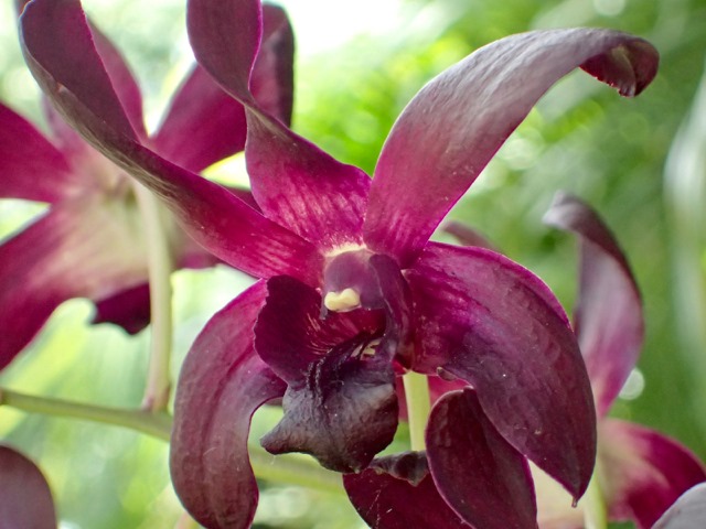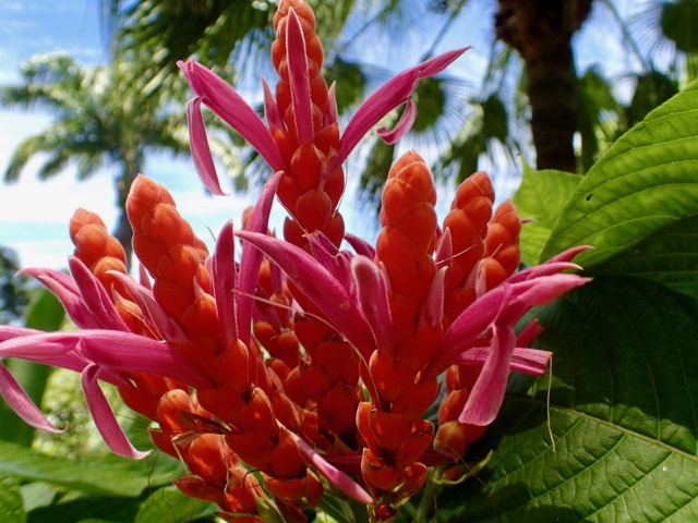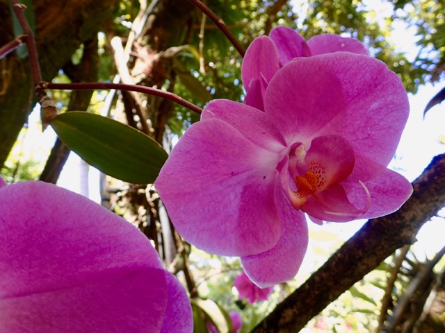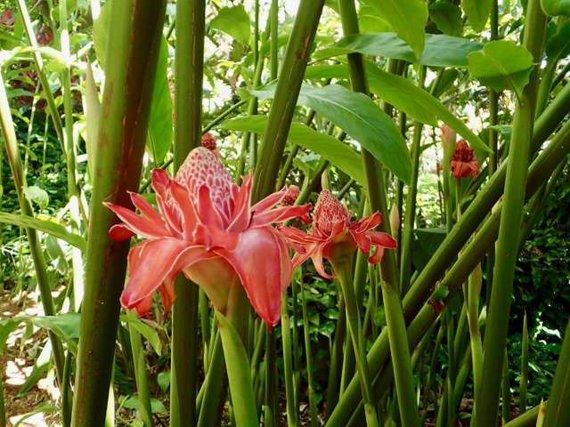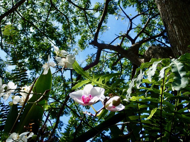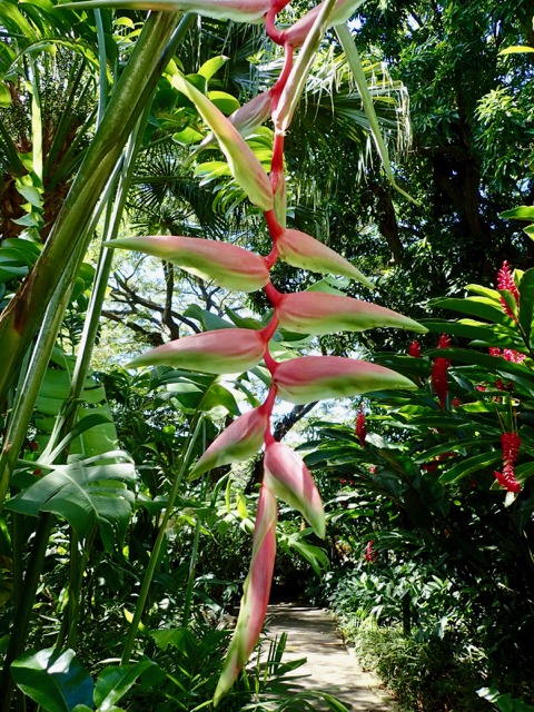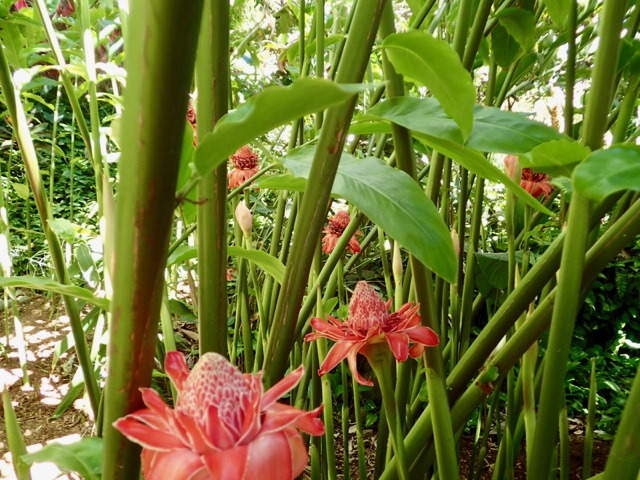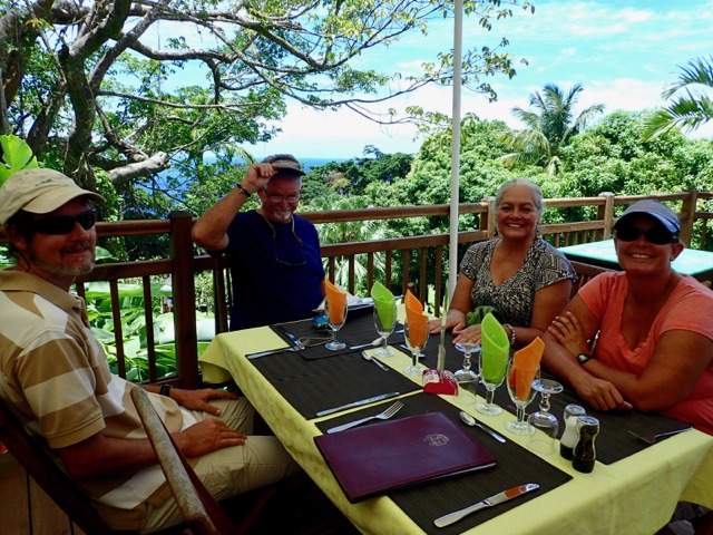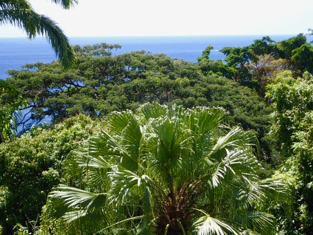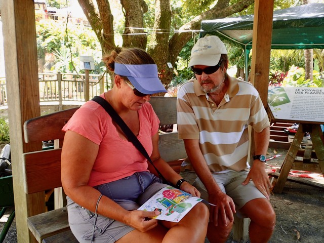 ), dinghied over to a fishing boat harbor and grocery shopped, ate dinner back on Nancy Lu, went to bed, woke up early and sailed the short distance north to the bay off the town of Deshaies along with SeaFrog, anchored and spent all of that rainy day on Nancy Lu, made plans to go to the famed botanical gardens the next day with Kendra and Mike and Cynthia on s/v Minx whom we found when we entered the bay. We followed through with our plans the next SUNNY day, and I got a FEW