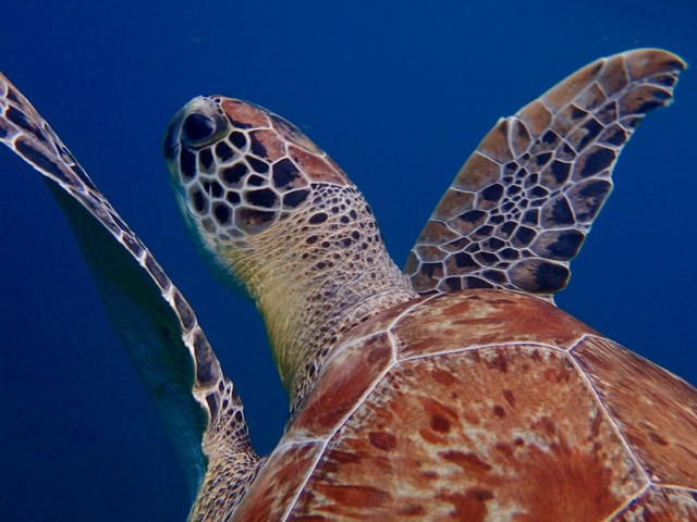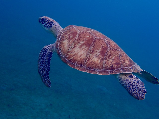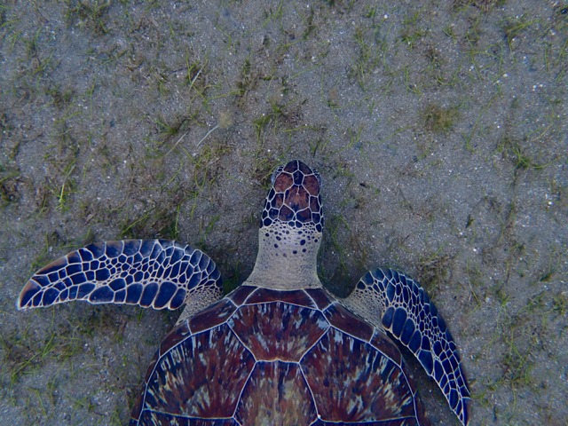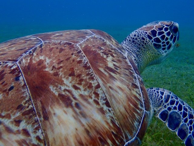 See the turtle grazing on the ocean floor?