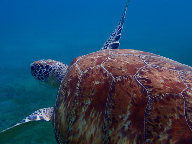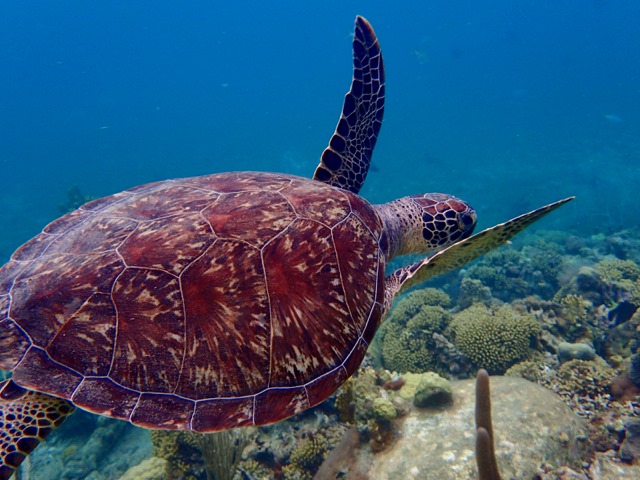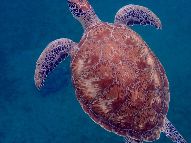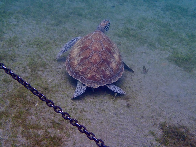 I went snorkeling again in the anchorage off Malendure Beach.  Surprisingly, I didn’t see turtles the last time I was here, but I did this time!