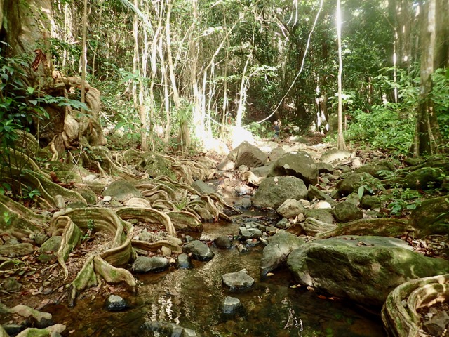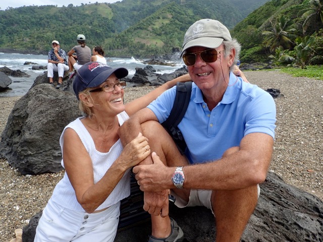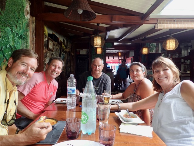 I love coming back to Dominica!  I’ve tried to think of a fitting alliteration, but I can’t—maybe DAZZLING DOMINICA?  No, not good enough.  I guess  I’ll have to settle for DIFFICULT-TO-DESCRIBE DOMINICA, but that still doesn’t do the job and is definitely not poetic enough!  Anyway, we were back with a different set of friends, Bob and Anita on s/v Discovery, Deb and Tony on s/v Exit Stage Left, and we found Gary and Kathe on s/v Tribasa Cross there!  So we shared with them, on different days, the place we enjoyed at the end of the epic hike we took with Ed and Cheryl on s/v Slow Down earlier this year.  This time we just skipped the hike and had more of a “walk” to the swimming hole in the Picard River.