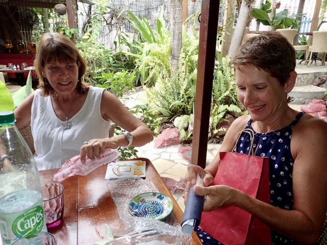 Mark planned my 55th birthday celebration at La Fringale, a nice French restaurant in town.  He invited Bob and Anita and Tony and Deb to join us.  I’m so glad that they did!  Thank you everyone; I’m a lucky girl!  I even got a present from Anita!