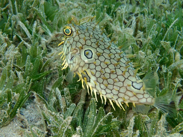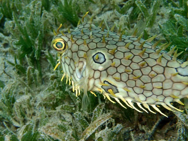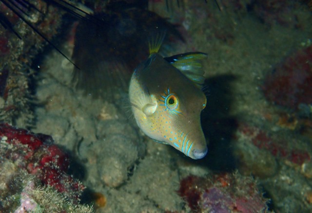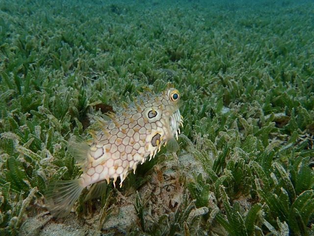 I was thrilled to see a little Burrfish, a fish I’ve never seen before.  It is in the puffer family.  It was about 8 inches long, and was not shy at all!  They’ve got to be some of the freakiest fishies in the sea!  Look at those eyes!