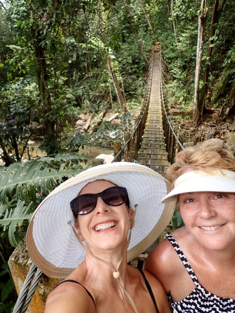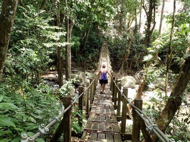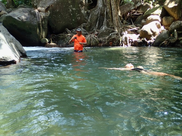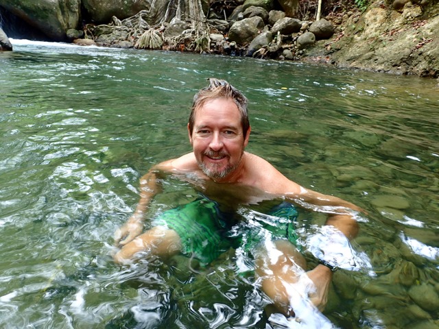 We had passed the swimming hole on the way to the suspension bridge for a photo opp.  We got good and hot on our way back to the swimming hole so we could thoroughly enjoy
