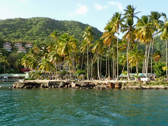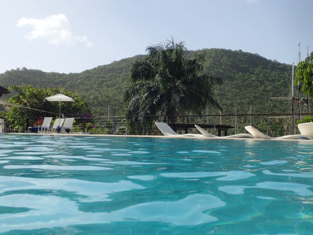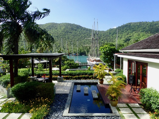 Marigot Bay.  Little did I know that we were in for a mini-vacation ( I know—we live on vacation; but not like this!)!!!  We paid for a mooring at the Capella Resort and Marina, so we were able to use many of their amenities!