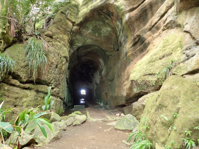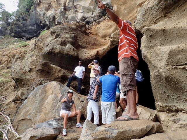 Our first stop was a national park where the main attraction is the watery, bat-filled, historic Black Point Cave that was hand chiseled by slaves in 1815 as a quicker route for transporting sugar from the factory at Grand Sable Estate to the wharf on the Byrea side of the cave.  The park also had beautiful black sand beaches.