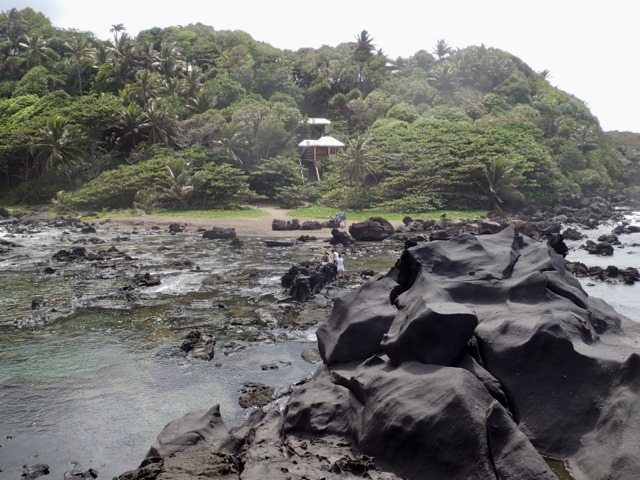 Before we went down to the salt pond, we enjoyed a delicious, homemade, traditional meal called peleau, thanks to Millie who prepared it and our tour guide who served us!  After lunch, we changed into our swimsuits and walked the 199 steps down to the ocean.