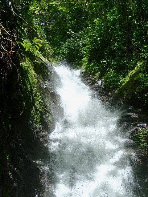 We got a snack for lunch, and hired a man to guide us on a hike up to Fountaine Bleu, another Concord Fall higher up.   OLYMPUS DIGITAL CAMERA