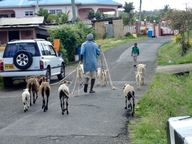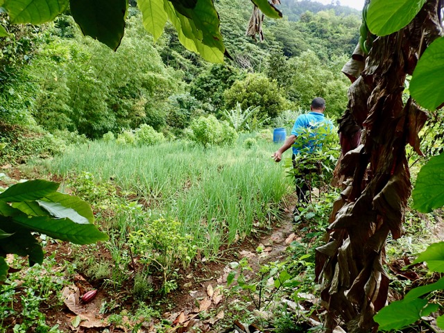 the man who had arranged for Elvis to be our guide.  Mark had asked him if they grew Chadon Beni, our favorite spice, on any of the farms around there.  He said that he did, and wanted to take us to where he pulled some for us, along with some basil!