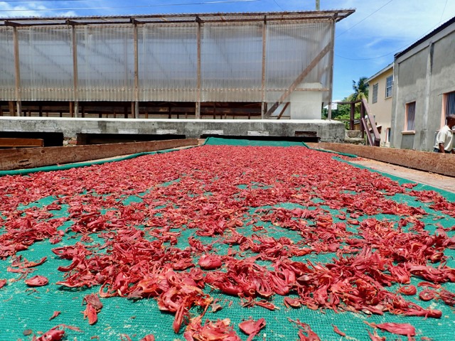 Drying Mace, the red part of the nutmeg, used in cosmetics