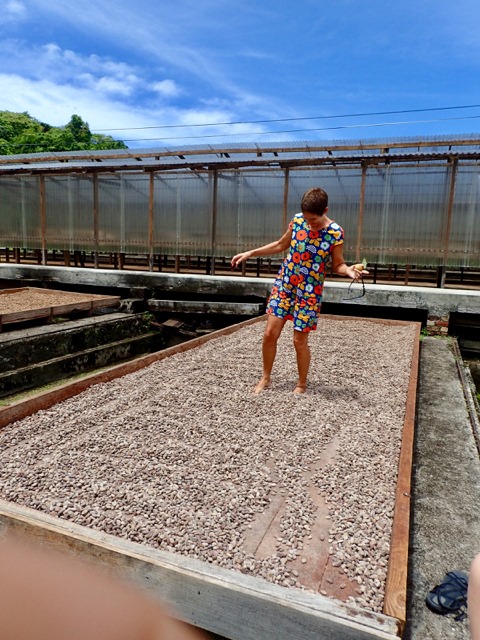Claire and I took part in part of the drying process of cocoa beans.