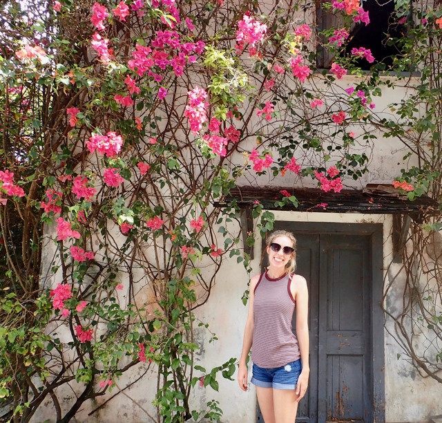 Claire posed for a picture with one of the many goats that we saw tied up along the road!