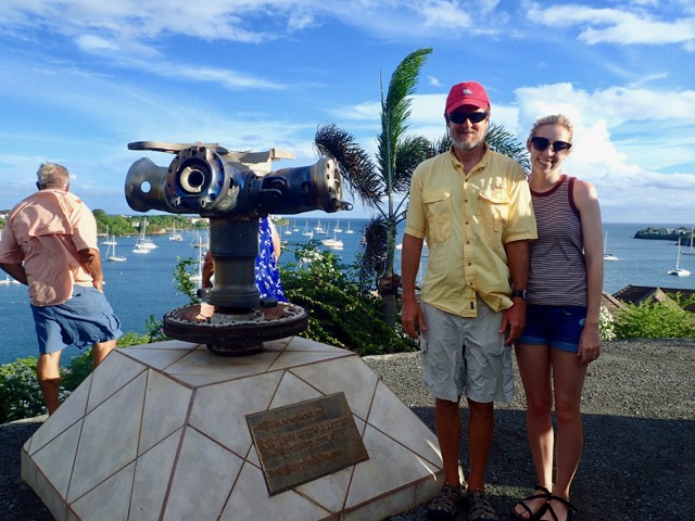 Our last stop was at a fancy resort that is near our anchorage.  It was also an unplanned stop, but Cutty wanted to show us a memorial to an American Marine helicopter pilot killed in the American invasion/intervention back in the early 1980s that was on the property.  We had been talking about this shared part of Grenada’s and the United States’ history.