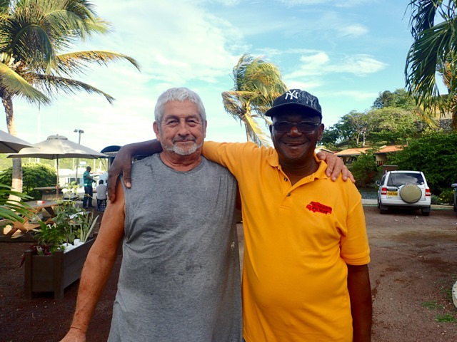 When we got back, Stan, a fellow cruiser with whom we attended church whenever possible, posed with his business partner, our tour guide, Cutty…