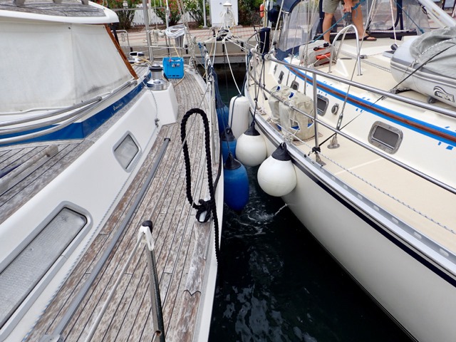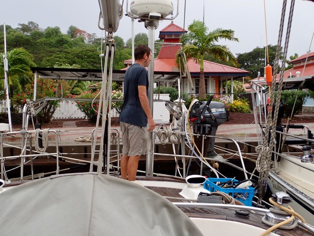 Mark worked tirelessly, sometimes in the rain, at getting the dock lines as perfect as he possibly could.  We had a tropical storm looming in the forecast while we were there.  The worst of it ended up staying south of us, but it sure did cause us to get busy with our to do list!