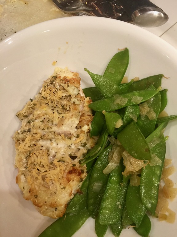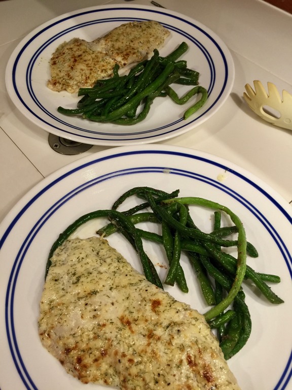 Another dinner of Broiled Parmesan Fish—same; Amberjack and Christophene (light green veggies) –not same,