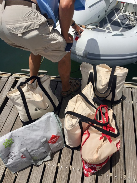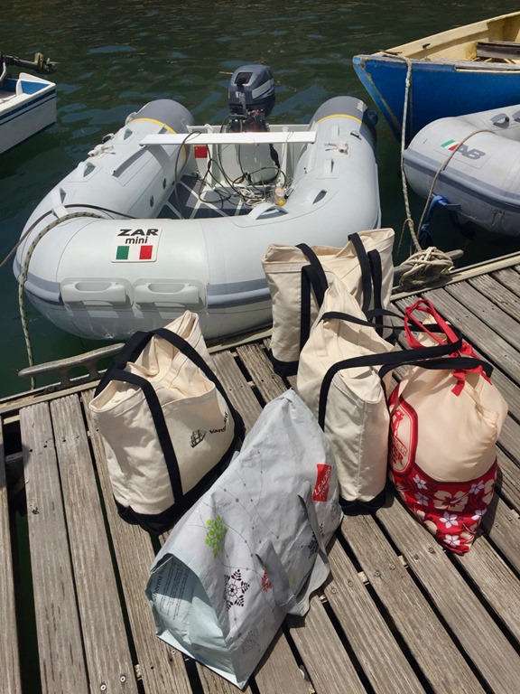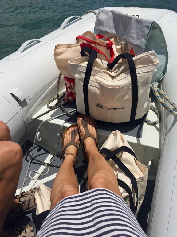 getting the bags from the dinghy to the cockpit,