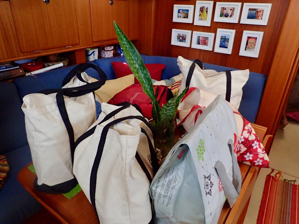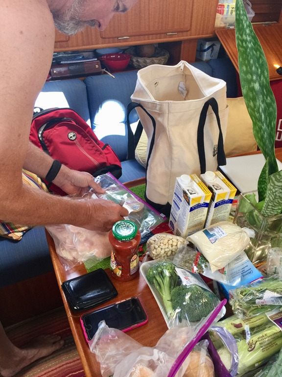 2. Oh, what a treat! The pictures are of course, lovely (as always!!). I’m glad Mark encouraged you to post even though this is a short trip… I LOVED to pictures and explanation of how you do your grocery shopping, food storage, and meals while on the boat. Maybe one of my all-time favorite posts!! I am LONGING to come visit on Nancy Lu!! Hopefully next season!! Looking forward to having you back home soon! Love you guys!! Be safe out there!!