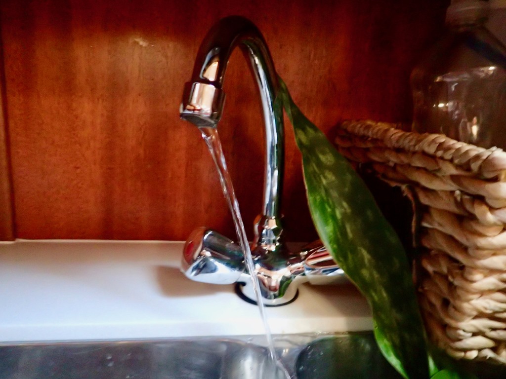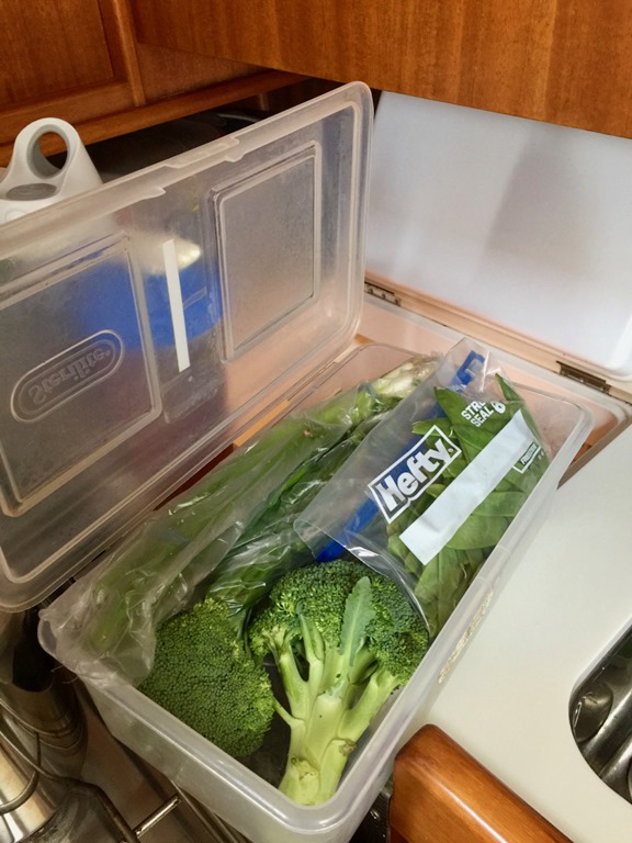 A side note:  I stow the plant that usually sits on the table, in the sink when we’re underway.