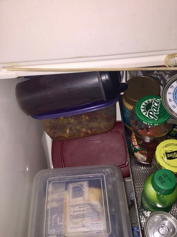 Oh wait, it’s time for lunch—leftover taco soup…sigh…everything has to come out to get to the goods…THIS is why this refrigerator is a source of bitterness—NOT SAME.