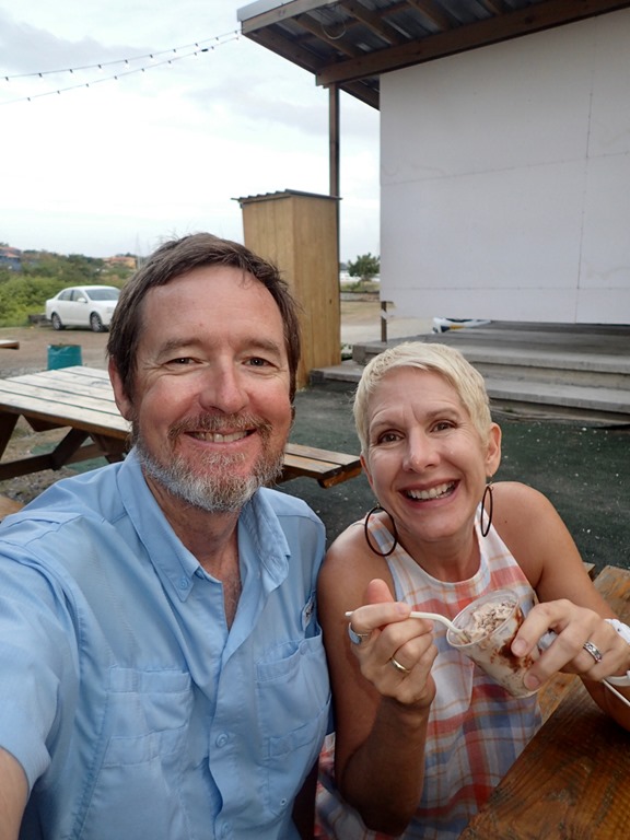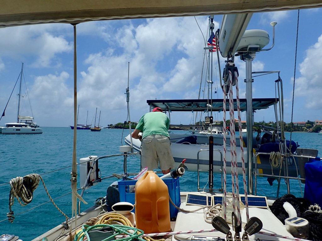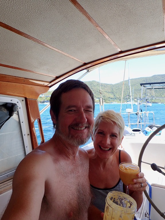We sent Roland and Vicki, our new friends on S/V Bella Luna, on their way to continue there journey to Trinidad for hurricane season with a smoothie get-together on Nancy Lu.  We really enjoyed getting to know them.  They also have a Hallberg Rassy 43 and worked for that company for many years.  Mark remembers corresponding with Vicki about ordering parts for Nancy Lu when we first bought her!