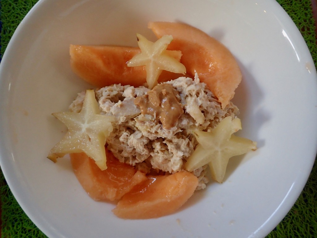 Tuna Salad Polynesian—same; Star fruit and a dollop of natural peanut butter (I didn’t have peanuts)—not same,