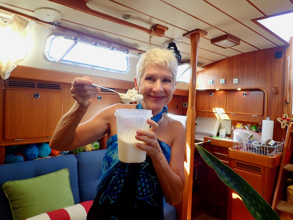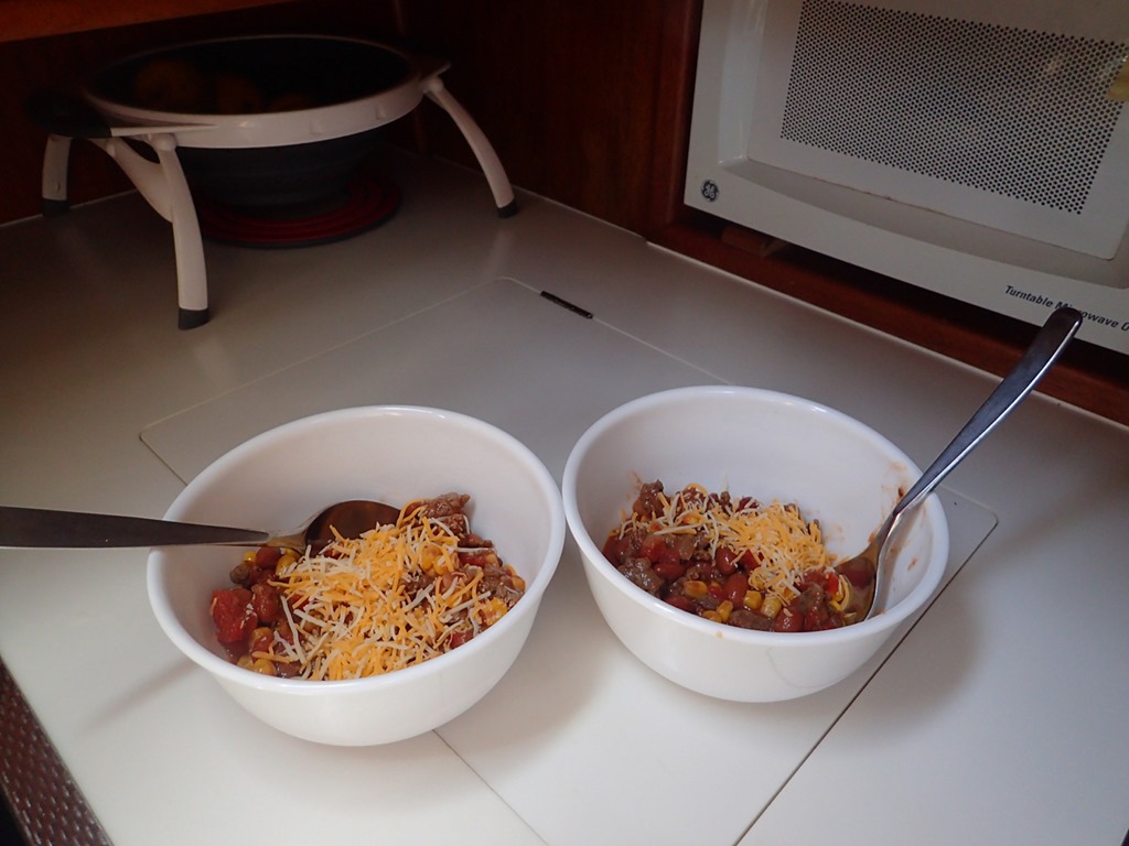 Well, sometimes people ask me about eating and cooking on Nancy Lu.  I don’t think I’ve written in depth about that subject before, so that might be a fun thing to share about.  I always tell people that we eat mostly just like we do at home, and that’s true.  There are things that are unique to cooking and eating on a boat, though.