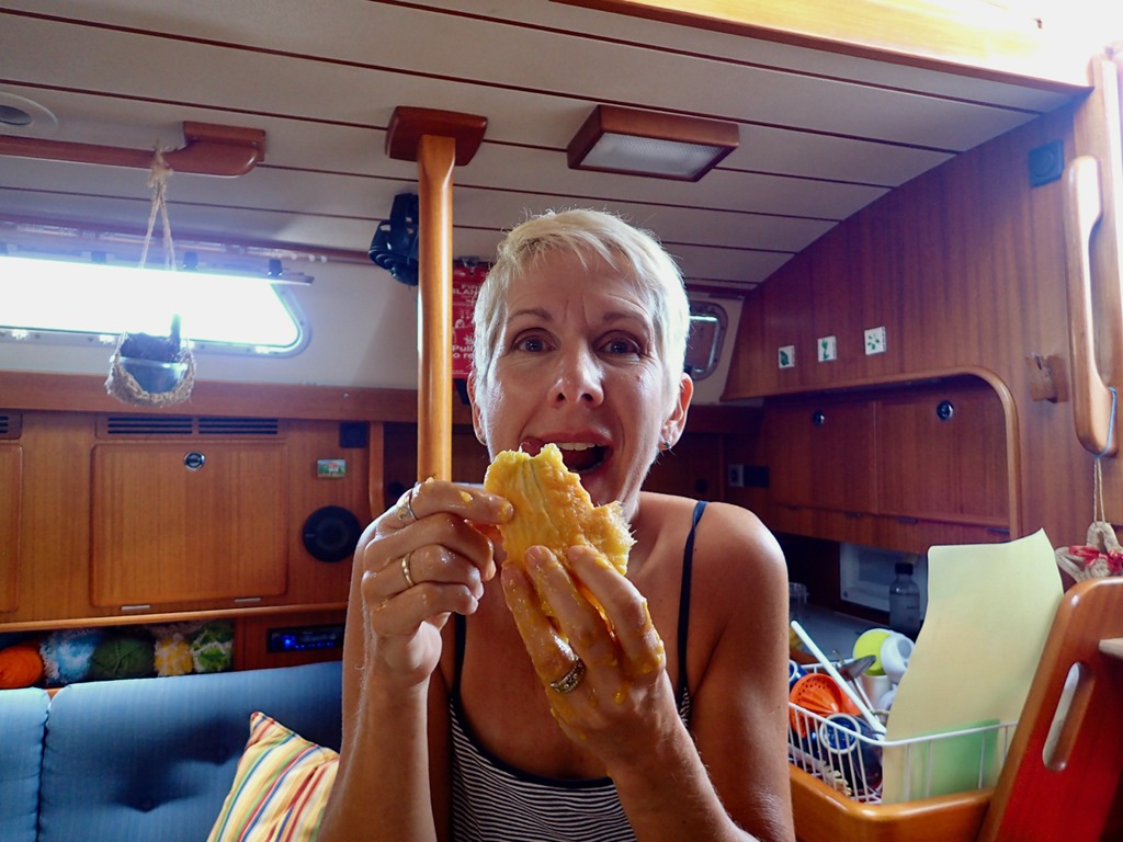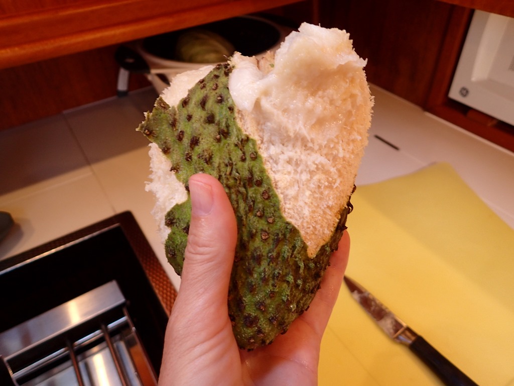 Mark brought some soursop back to the boat one day.  This was my first time to have it.  It’s way better than it looks.  It tastes like sour candy!