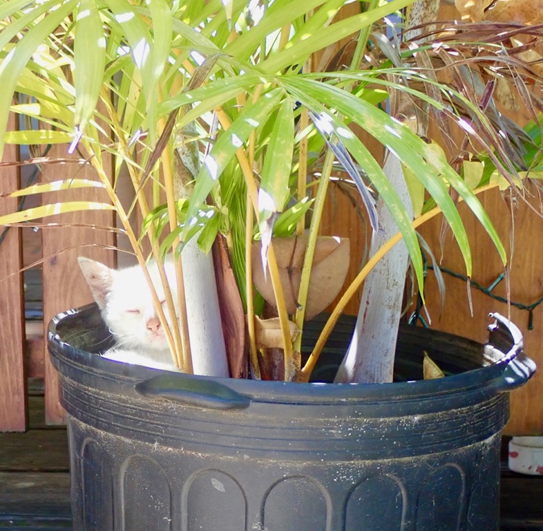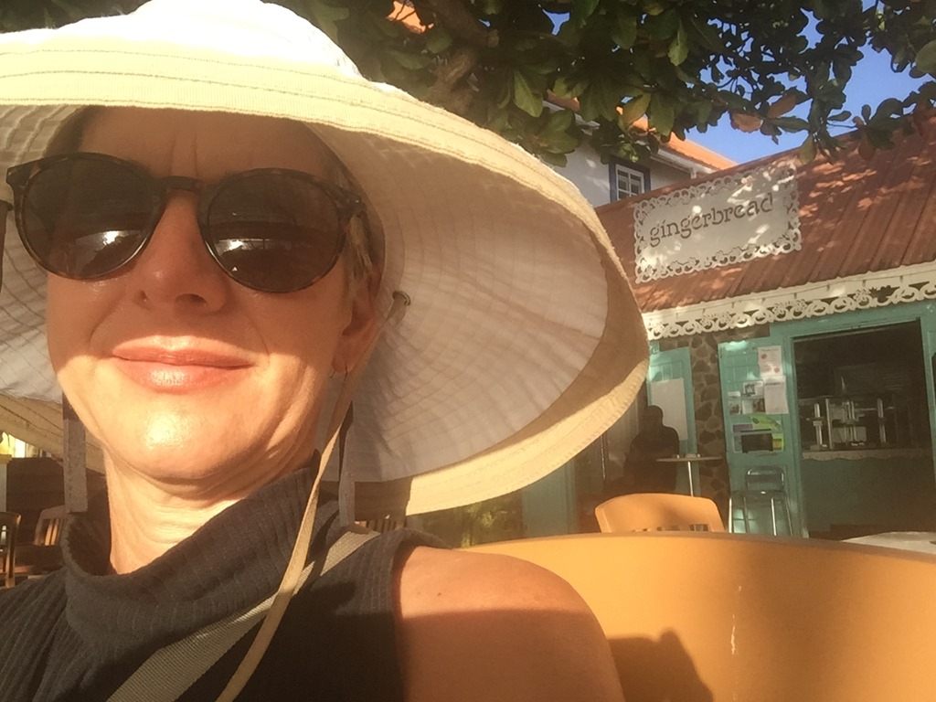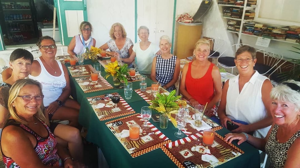 the next was at The Plantation Hotel. We had such a nice time at both places. The ladies’ motto when we get together without the guys is: No talk of Amps or Volts! These words are accompanied by a sequence of two finger gestures. The first is an upside down peace sign. Then that gets turned right-side-up (Amps or Volts /A or V)! We take part in quite enough talk of battery usage when on our respective boats