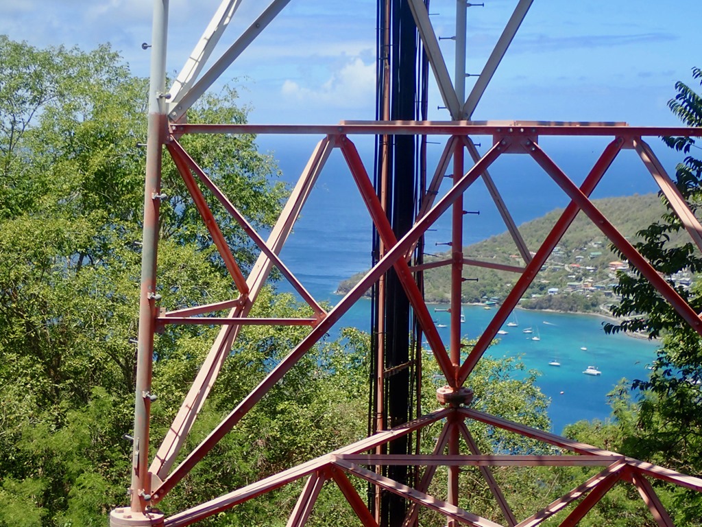 to the cell phone tower a little higher up where we could see Nancy Lu at anchor below.