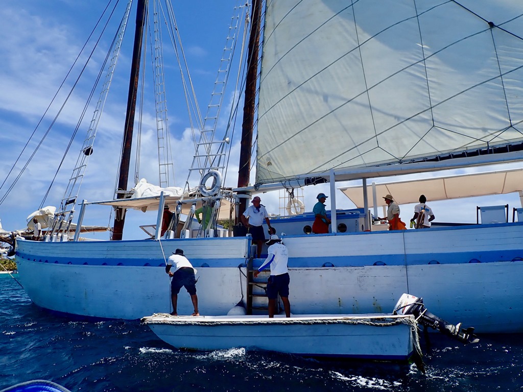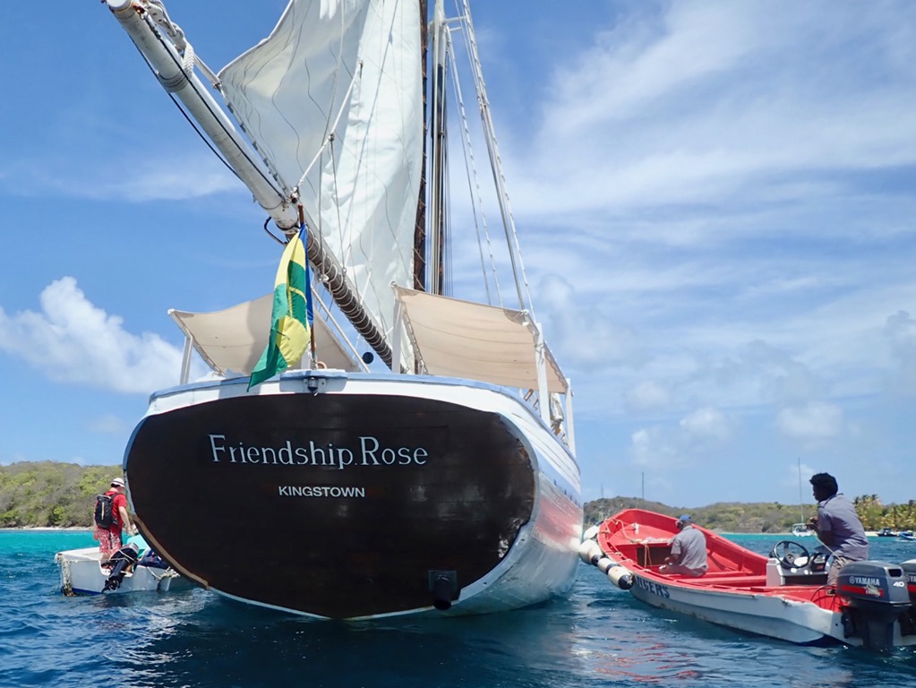 Friendship Rose is a 100 foot wooden schooner built entirely by hand in Bequia in 1969, the last of its kind to be built. It was originally used as a “mail boat”, ferrying mail, freight and passengers to and from Bequia and St. Vincent until its retirement in the early 1990s to its more relaxed line of work as a day-trip charter. It was a fun experience especially
