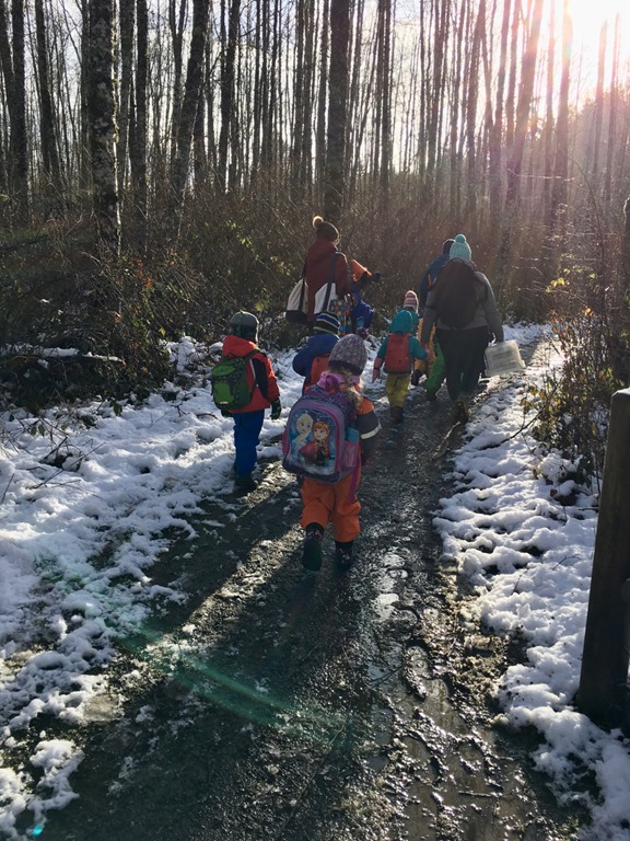 I actually got to go to school two days. They were both short days due to the snow. Jenny and I enjoyed talking with each other on the trip to and from the forest each day (and our stops at Sonic on the way home)!! There are so many interesting things to discuss with your sister after a morning watching and helping to facilitate children growing and learning through play in such a beautiful, inspiring “classroom”! I’m super happy and proud for her!