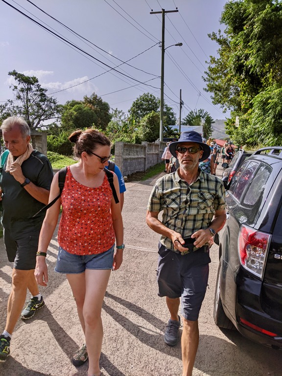 I had assured Jeremy and Jane that a hash was a great way to get to see different parts of Grenada and that it wasn’t too strenuous. So we caught Shademan’s bus for cruisers going to the hash. He got us safely there, and we were greeted with the characteristic THUMPING music through massive speakers. After brief instructions from the Hash Master, we were off on the walker’s trail…