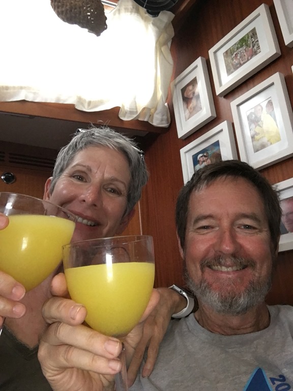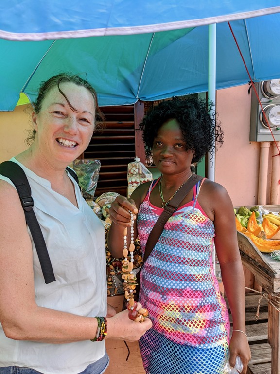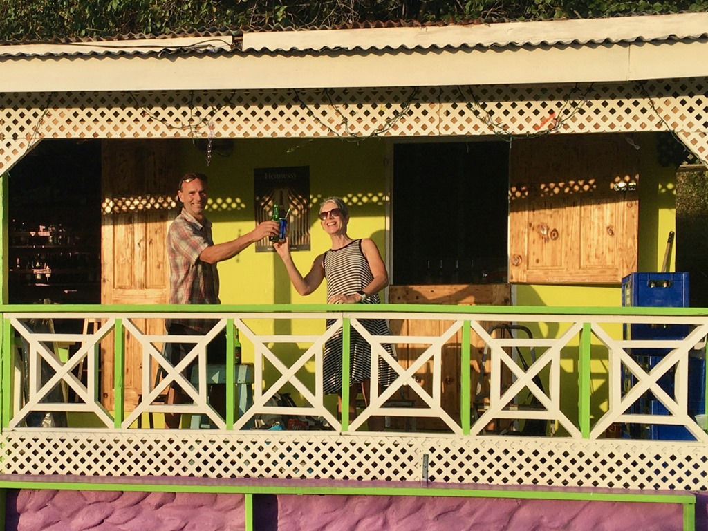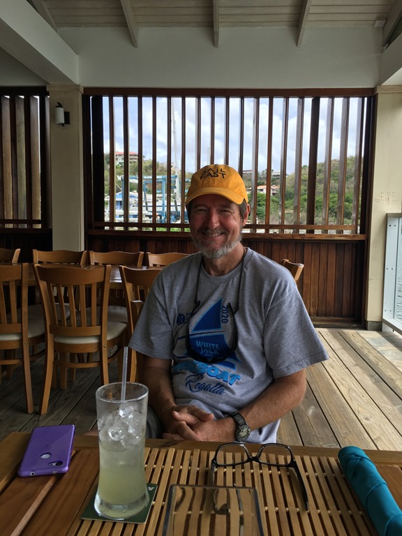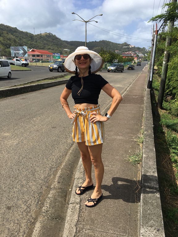 Our last outing before we left Grenada to head north was to get a much needed haircut for both of us and shopping for some “nice” clothes for Mark. He changed into them before we left the mall to go have lunch at Umbrellas! We came back to the mall for some grocery shopping… Afterwards, on our walk from the bus stop back to our dinghy, I carried one of the shopping bags over my right shoulder. I had injured that shoulder on our first hash of the season—the one where we did controlled falls, swinging like Tarzan from trees. It had bothered me slightly ever since then, but when I woke up the morning after our shopping trip, I thought I might need to go to the doctor! OUCH, I could hardly move it! Instead, we applied ice regularly for the next couple of days before we left Grenada and that seemed to help. I think I must have tendonitis. Here’s hoping that my shoulder will allow me to do some of the adventures that we have planned as we travel north…We shall see! This DEFINITLY doesn’t mean we’re getting old!….Does it???? Let the adventures continue!!! I’ll report how things go for these middle aged, one of which is slightly worse for wear, cruisers in my next blog post!