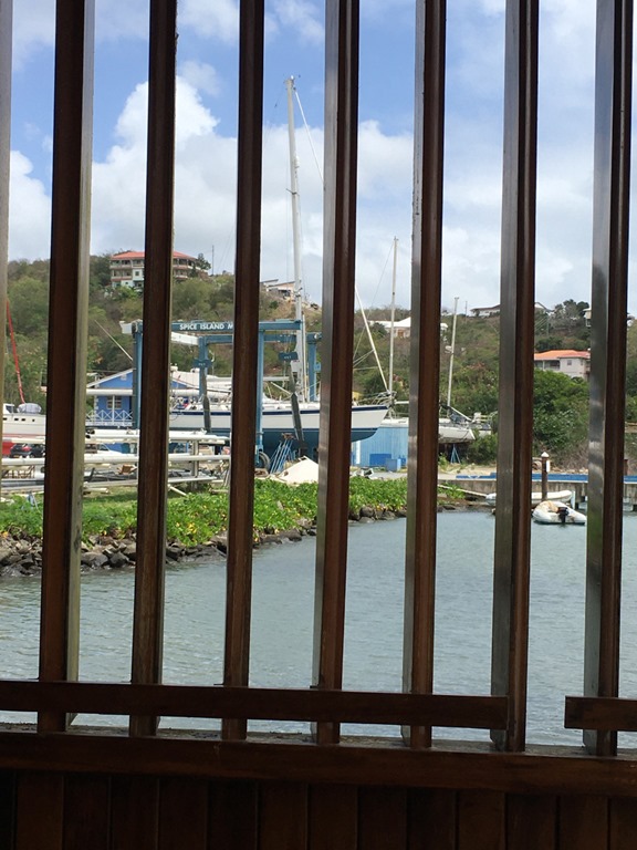 The next day, we moved our boat around from Woburn Bay to Prickly Bay in order to get hauled out for an insurance survey. This was an annoying necessity because our current insurance informed us that they were not going to renew our policy when it runs out in a month. We had to get the survey in order to get new insurance for which we were now shopping. This has been happening to a number of boaters in the Eastern Caribbean due to insurance company losses due to the devastating hurricanes in recent history. UGH!