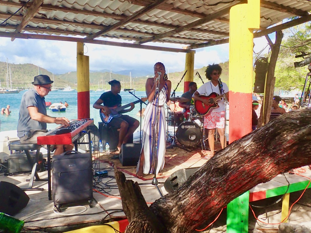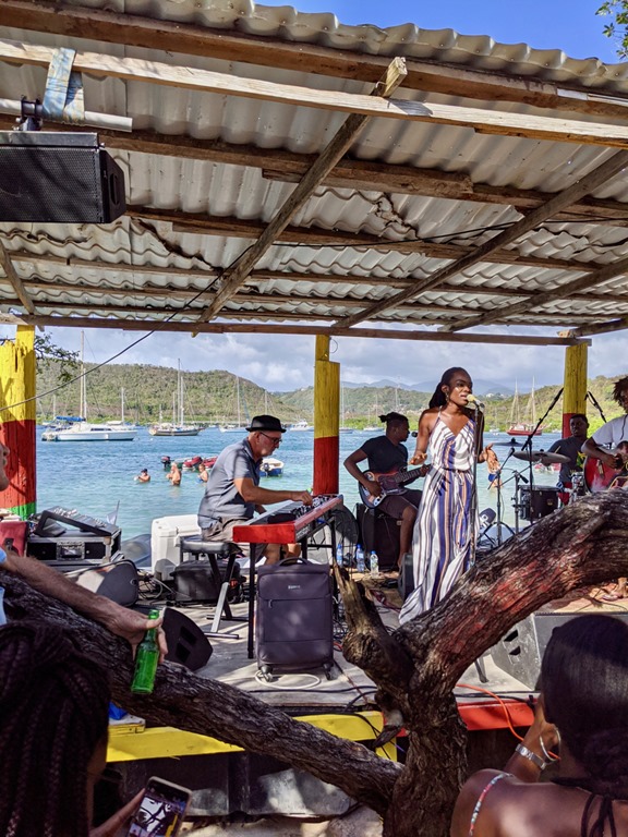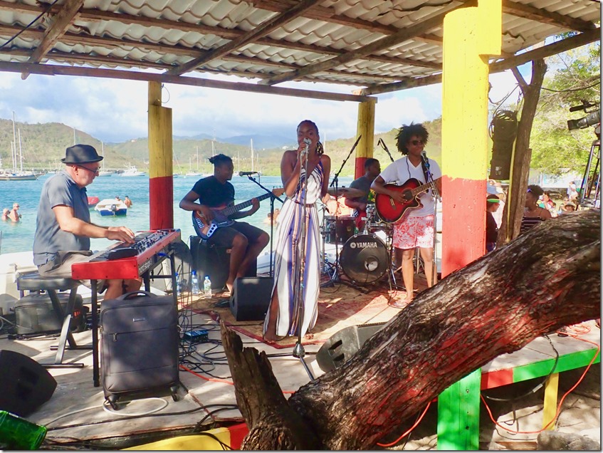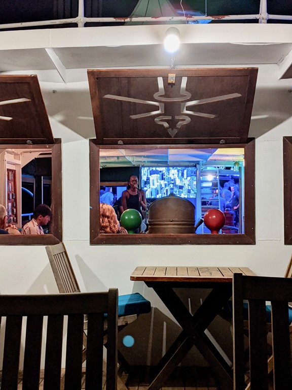 Our friend, Jeremy, captain of Right Turn, our buddy boat on the sail from Trinidad, recommended, on the night we arrived in Grenada, that we dinghy over to hear Sabrina at The Lightship. The Lightship is a cool venue docked at Le Phare Bleu Marina. in a past life, it was a working lightship (like a lighthouse) in Sweden. Now, you can go there to hear Sabrina’s mellow sound every Friday night and have a little fun exploring the ship, including the light tower. I’ve been a fan of Sabrina’s ever since that Friday night! Mark and I both said we’d be happy to go hear Sabrina again given the opportunity! This was the first of many experiences that the crew of Nancy Lu enjoyed with the crew of Right Turn!