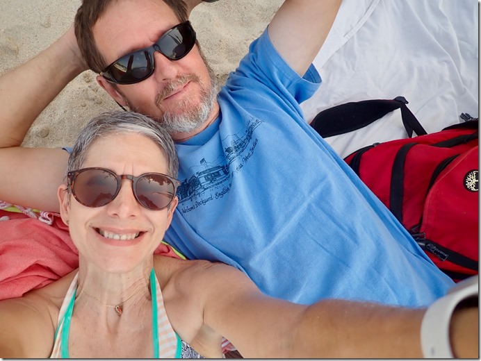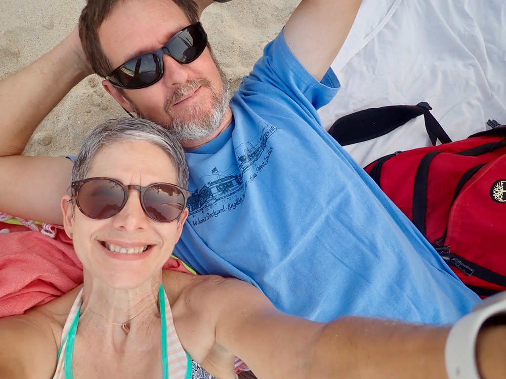 for a walk about the Carenage. They met us back at the beach for lunch at Umbrellas, a popular tourist restaurant right next door to Eco Dive. After that, Mark went home and Jane joined a snorkeling tour from the same Eco Dive boat that took Jeremy and me to our first afternoon free dive at Flamingo Bay. The next day, Mark opted out of the free diving adventure (he had pesky boat projects that needed attending). Jane hung out at the beach all day except when she met us for lunch at Umbrellas! She had a chance to make a lot of headway reading a book written by Jeremy’s father about a 3 year sabbatical that he took on a boat in the Mediterranean with his family of 5, including a teenage Jeremy. I plan on enjoy reading it at some point!