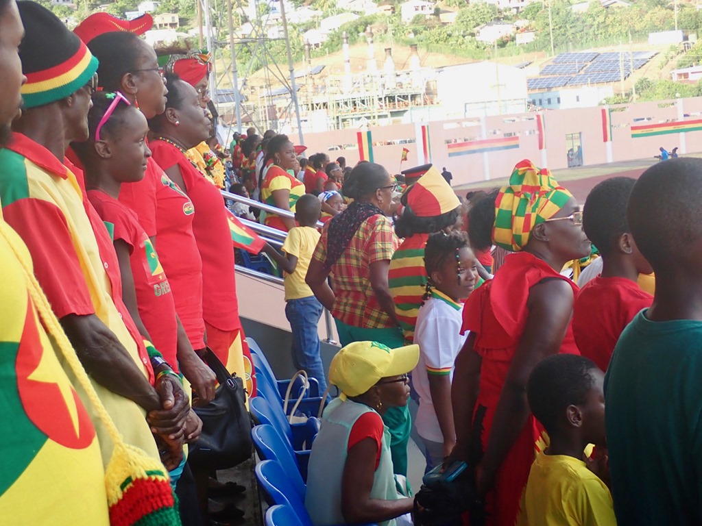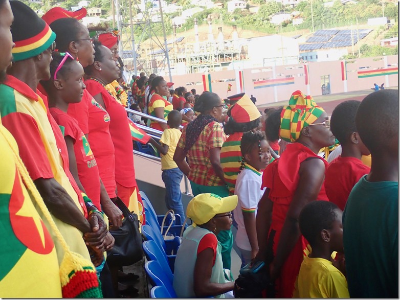 Proud citizens of Grenada, a British Commonwealth Country, turn out in their national colors. There was much pomp and circumstance as the different platoons parade in front of the Governor General.