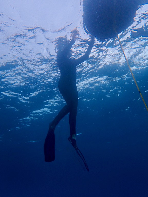 —after my initial outburst, it took ALL the self control I could muster not to burst out laughing again, but I kept it under control!! Another weird, laughable thing that I brought to the free diving experience was the embarrassing, involuntary squeaking sound that I made while equalizing my ears at deeper depths. I fancied myself a dolphin caller