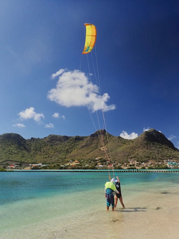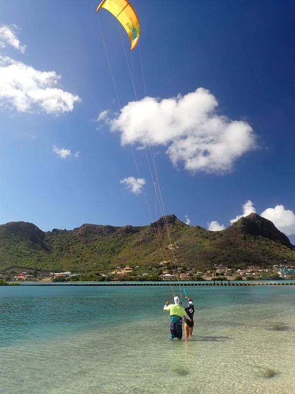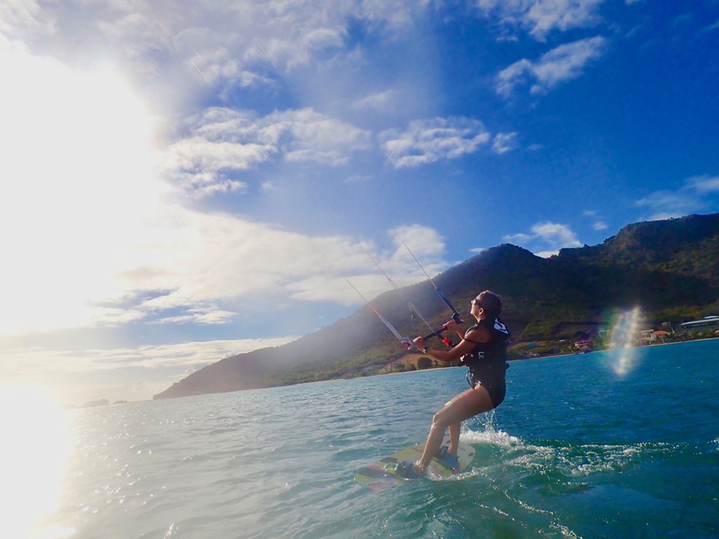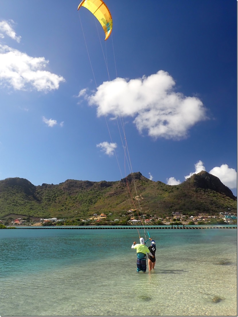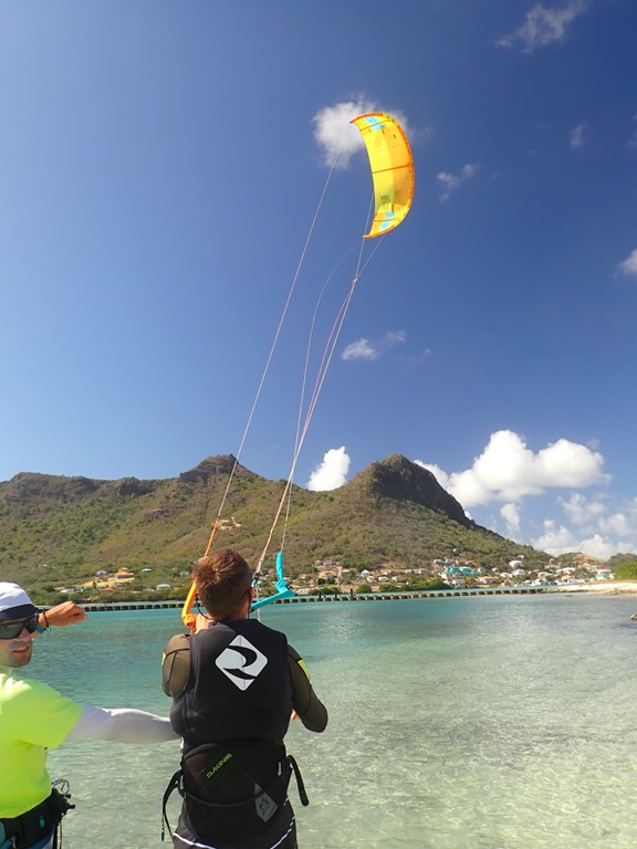 Then, we worked on kite control from the shore. At this time, my shoulder was still quite compromised from my Grenadian hash mishap. I almost bowed out of giving it a go, but I’m glad I didn’t! Kite boarding is surprisingly easy on the shoulders.