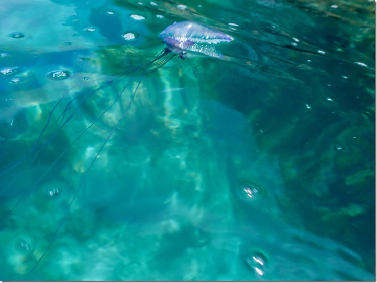 On a snorkeling expedition with Hal and Marcia, who arrived at the anchorage a couple of days after us, we encountered a sea creature that, until then, I had never happened across and I would just as soon never come that close to one of its kind ever again! I was so thankful that none of us got tangled in the Portuguese Man-Of-War Jelly Fish’s long tentacles.