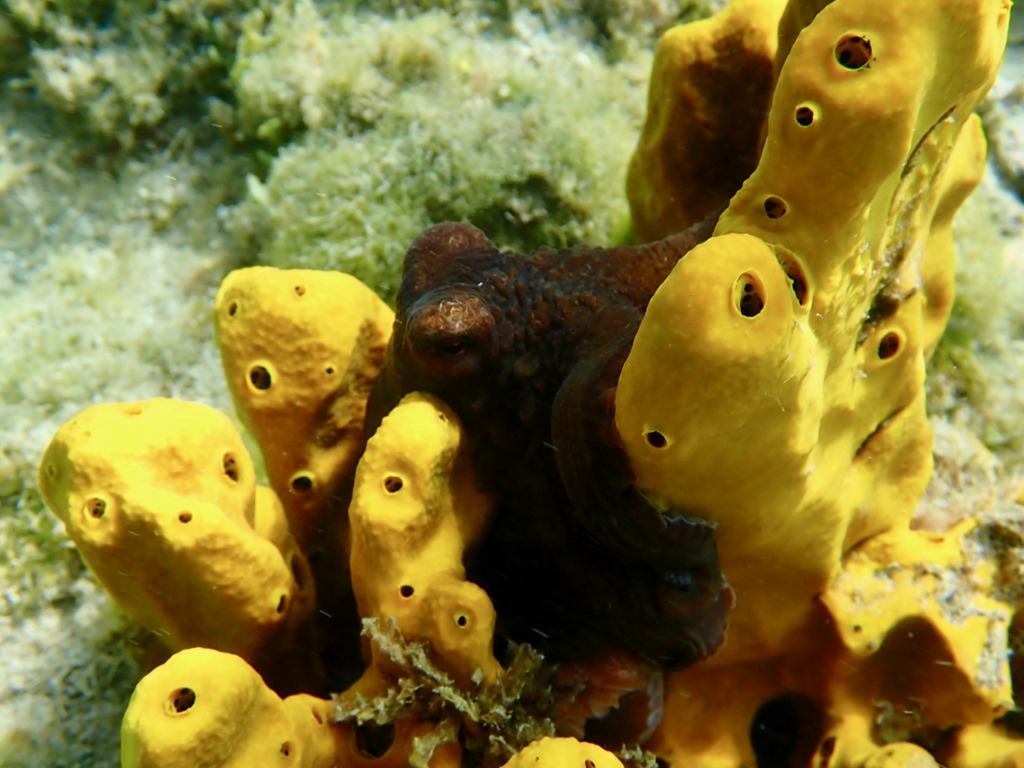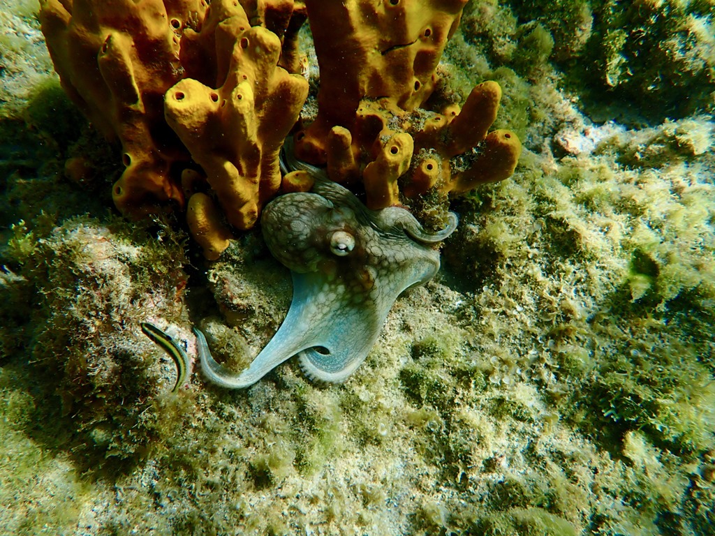 The coral was not impressive except one bit of Elkhorn Coral, but I found the OCTOPI!!